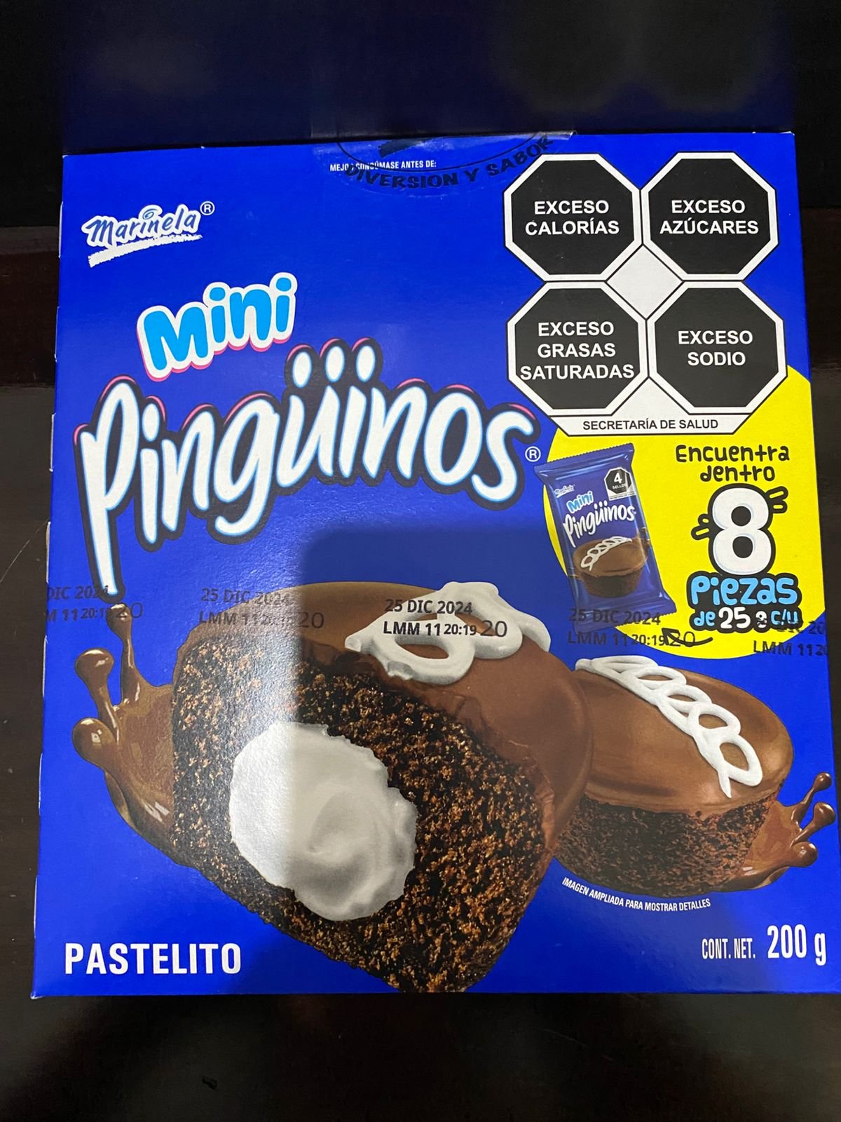 caja de mini pingüinos con 8 pz de 25g